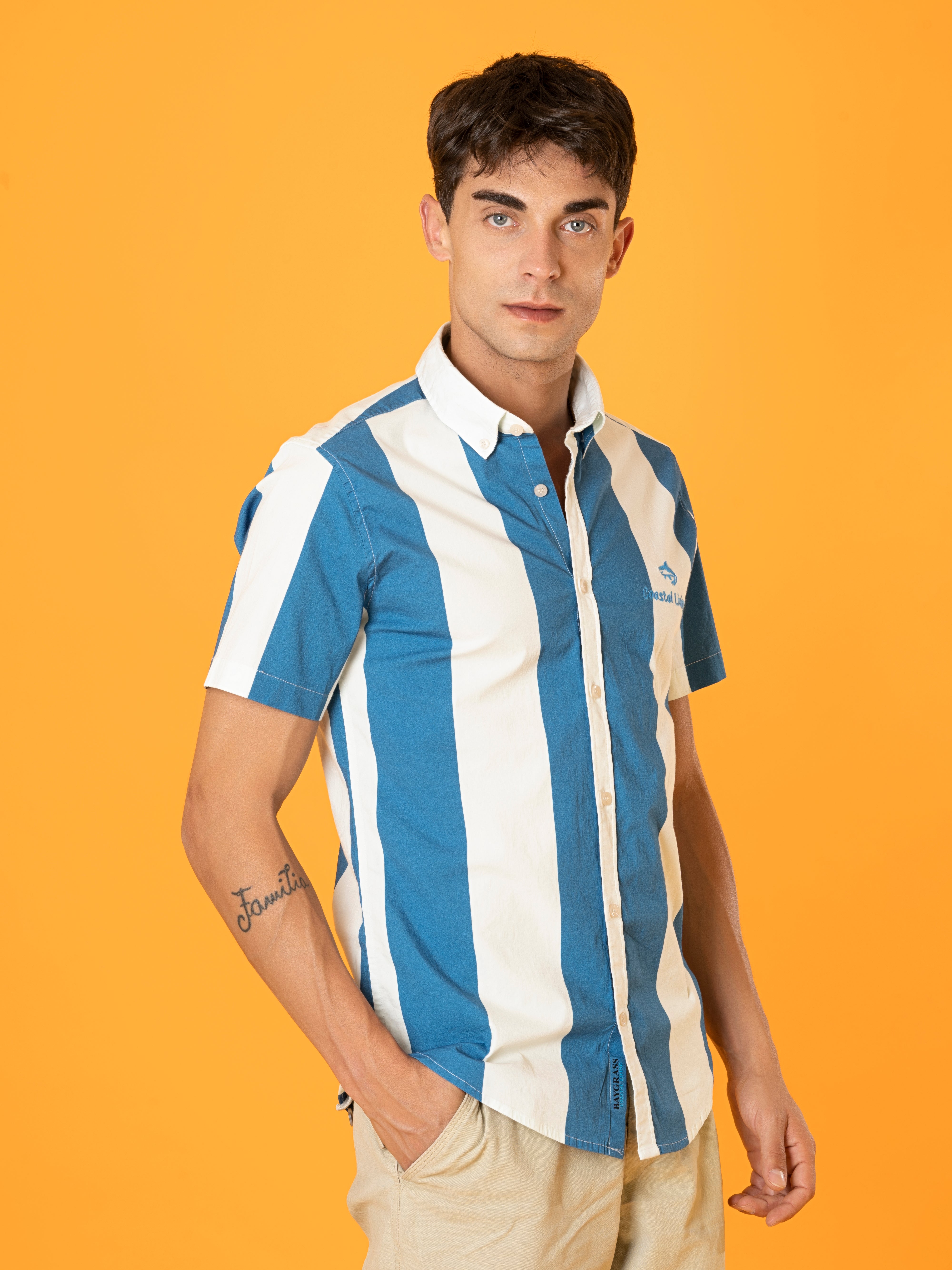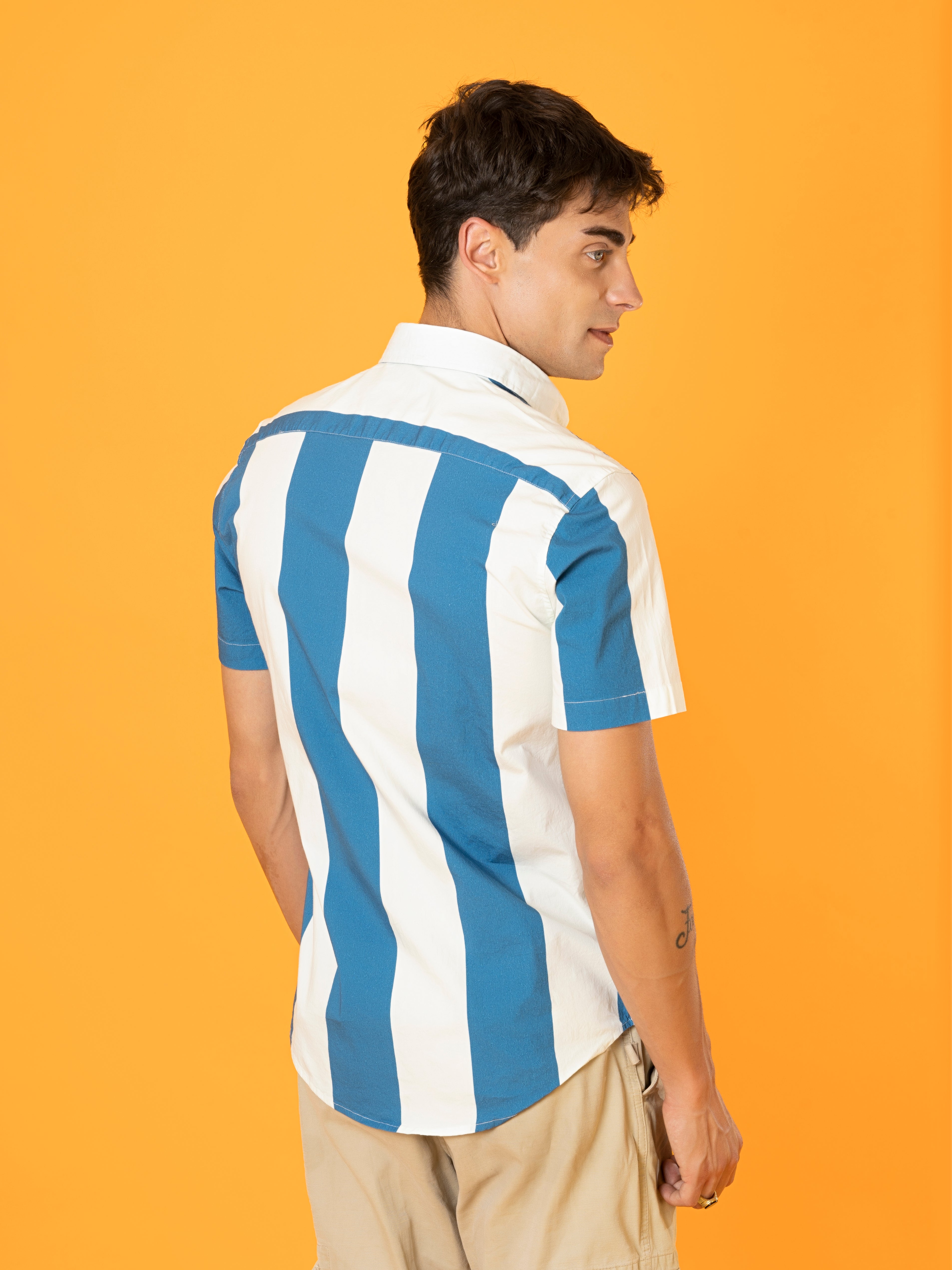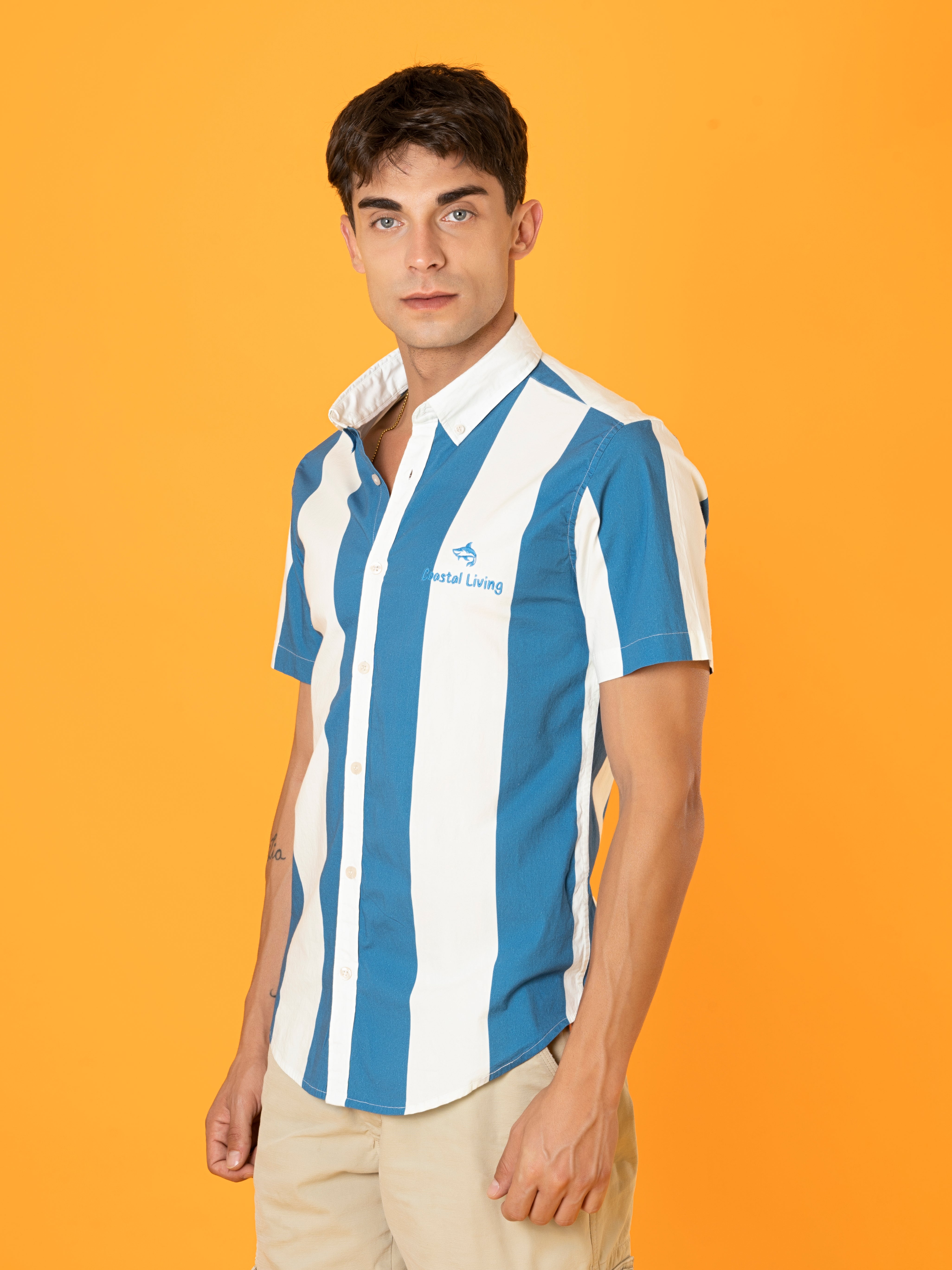 The Blue Nautical Stripes Camp Shirt is both stylish and comfortable. The fabric is soft, and the fit is just right for a casual day out.