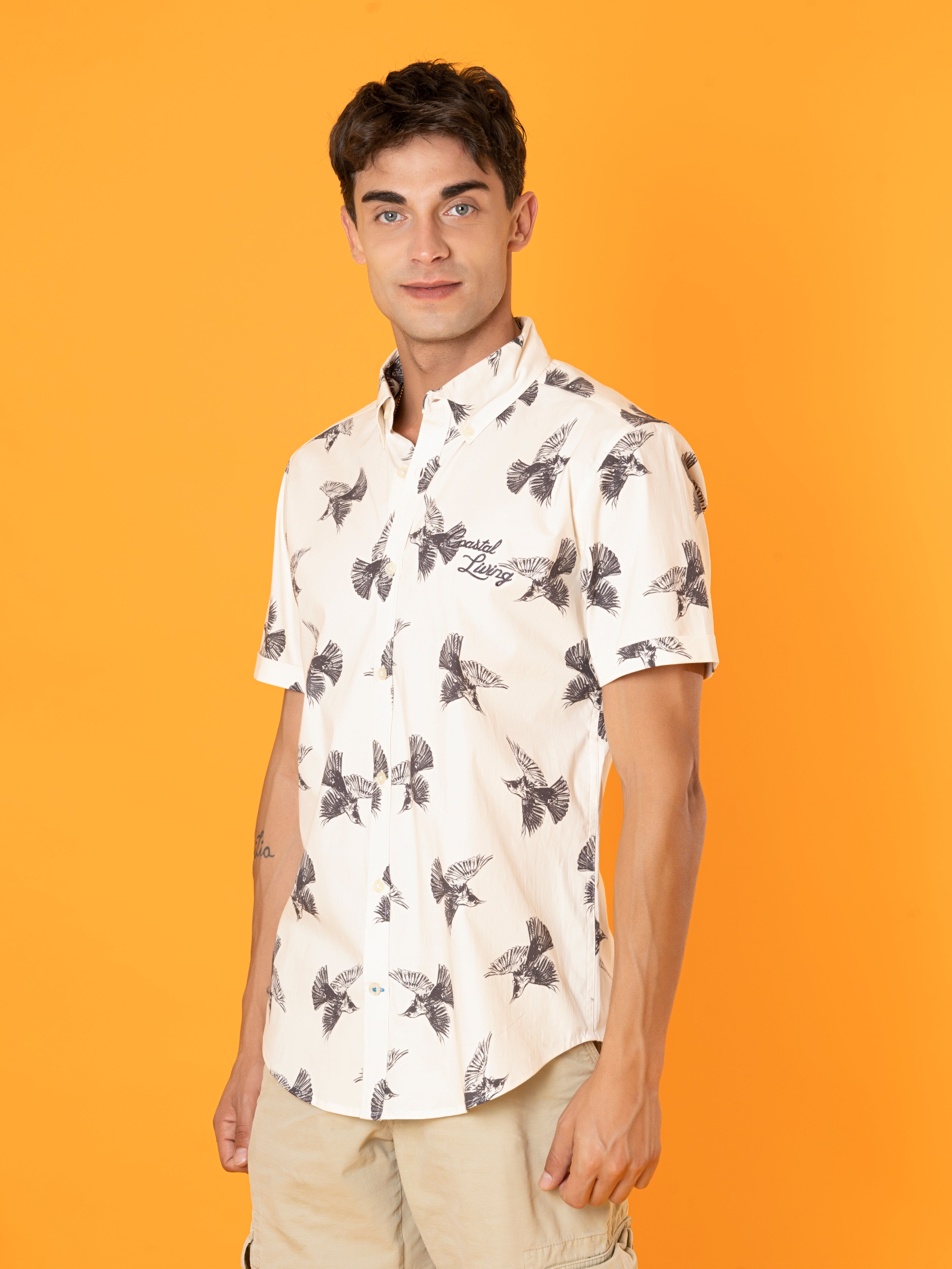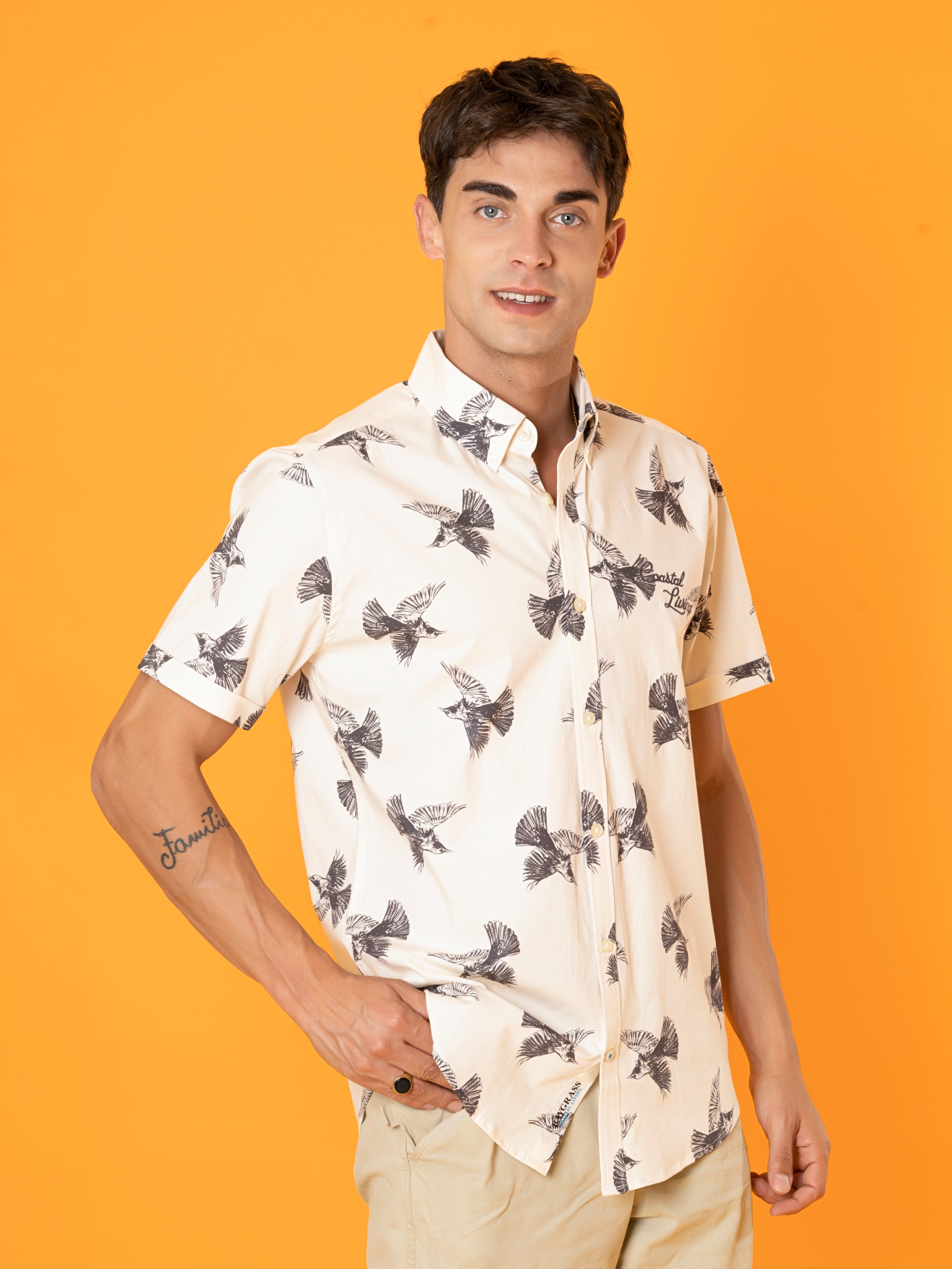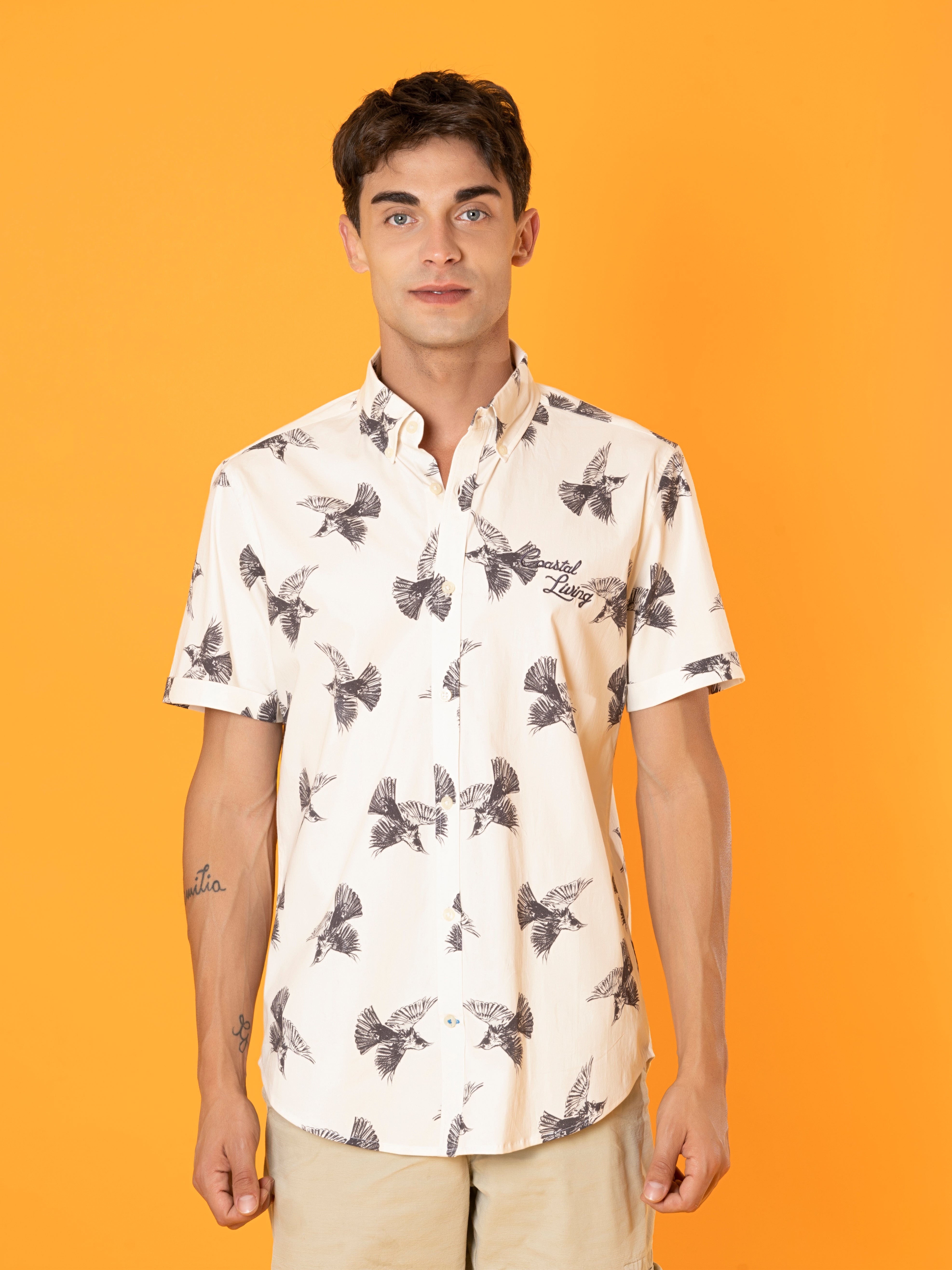 The Birds View Camp Shirt has a cool, casual vibe that’s perfect for summer. The bird pattern is unique, and the shirt is really comfortable